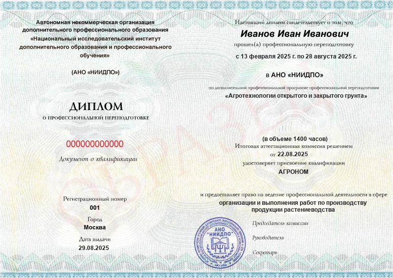 Получите квалификацию агронома и научитесь выращивать с/х-культуры в любых условиях за 6,5 месяцев: