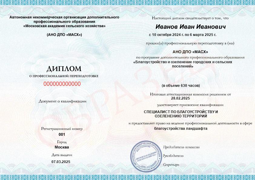 - Получите официальный диплом о профессиональной переподготовке с присвоением квалификации «Специалист по благоустройству и озеленению территорий».