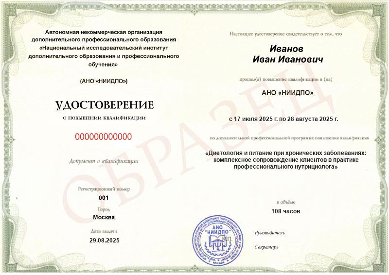 Обзор программы повышения квалификации «Диетология и питание при хронических заболеваниях: комплексное сопровождение клиентов в практике профессионального нутрициолога»
