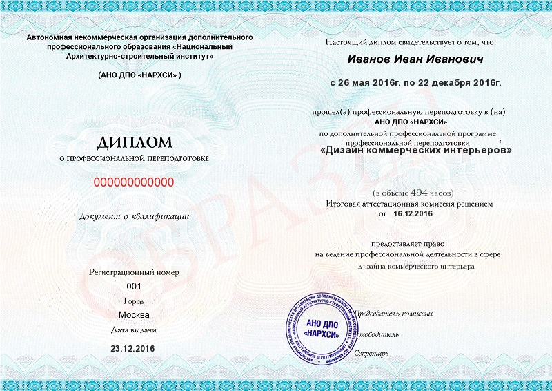 Согласно закону, дипломы о профпереподготовке могут быть оформлены в порядке, установленном образовательным учреждением (пункт 19 Порядка организации и осуществления образовательной деятельности по ДПП). Образцы квалификационных документов размещены на сайте нашей образовательной организации.