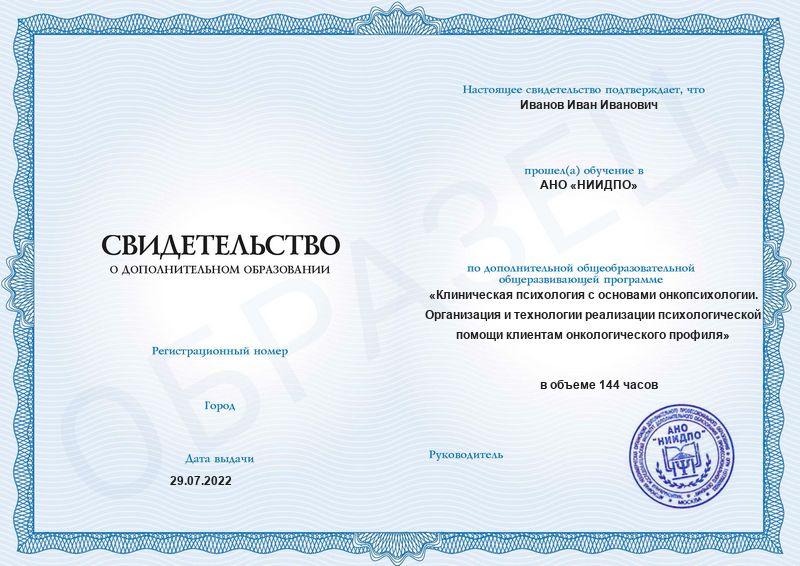 Клиническая психология с основами онкопсихологии. Организация и технологии реализации психологической помощи клиентам онкологического профиля (144ч)