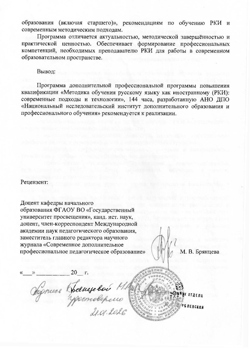 Читайте рецензию доцента кафедры начального образования ФГАОУ ВО «Государственный университет просвещения», члена-корреспондента Международной академии наук педагогического образования, кандидата исторических наук Брянцевой М. В.