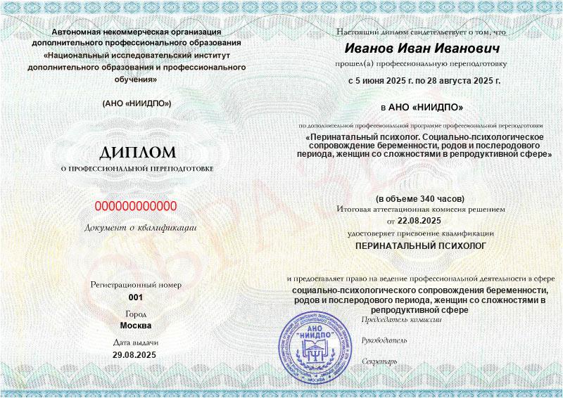 Перинатальный психолог. Социально-психологическое сопровождение беременности, родов и послеродового периода, женщин со сложностями в репродуктивной сфере (340ч)
