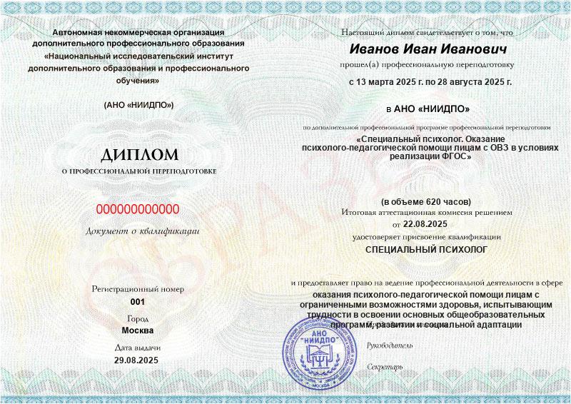 • Квалификация: Специальный психолог