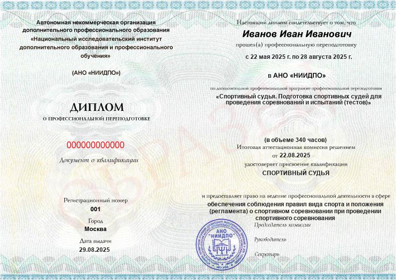 Спортивный судья. Подготовка спортивных судей для проведения соревнований и испытаний (тестов) (340ч)