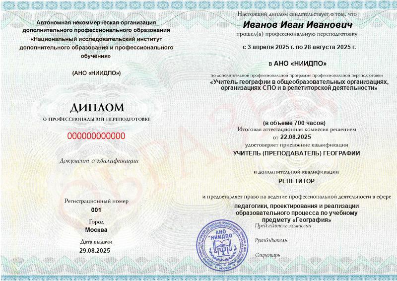 Обзор программы профессиональной переподготовки «Учитель географии в общеобразовательных организациях, организациях СПО и в репетиторской деятельности» с присвоением квалификации «Учитель (преподаватель) географии» с дополнительной квалификацией «Репетитор»