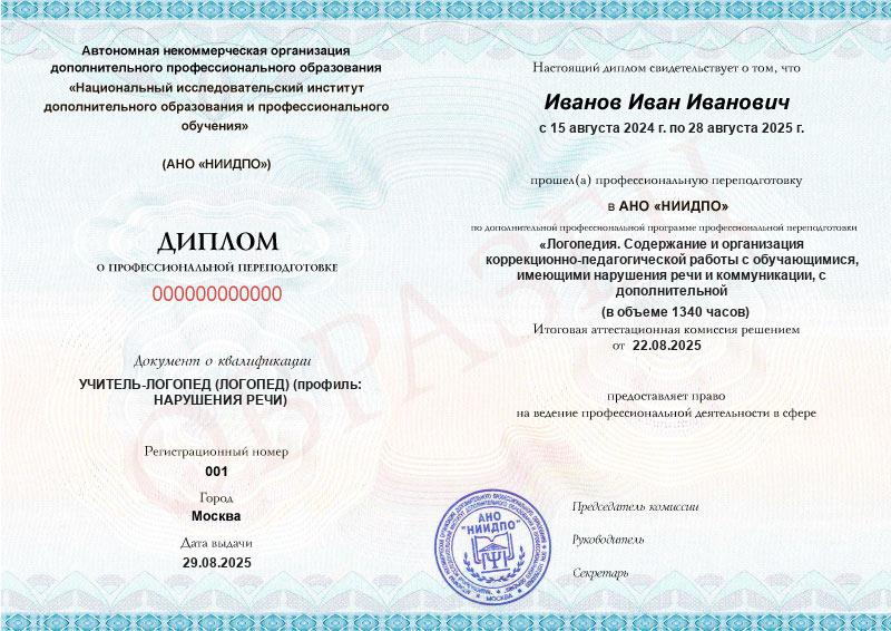 Да, документы оформляются на бланках с защитой от подделок, заполняются на русском языке, в них ставится печать АНО «НИИДПО».