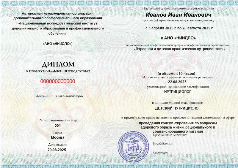 Обзор программы профессиональной переподготовки «Взрослая и детская практическая нутрициология» с присвоением квалификации «Нутрициолог» с дополнительной квалификацией «Детский нутрициолог»