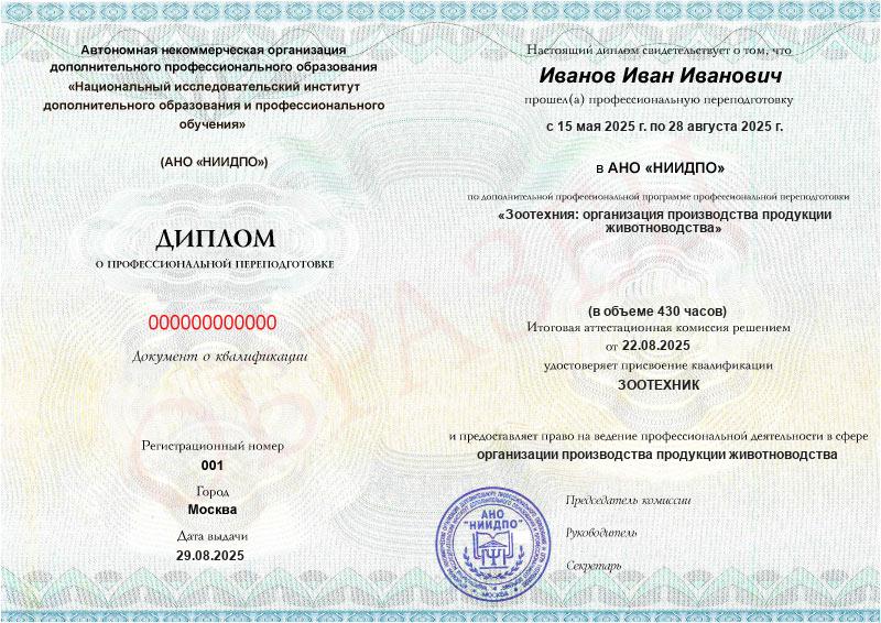 • Получите диплом о профессиональной переподготовке по зоотехнии и начните карьеру на сельхозпредприятии, птицефабрике, мясокомбинате, в НИИ или в собственном хозяйстве.